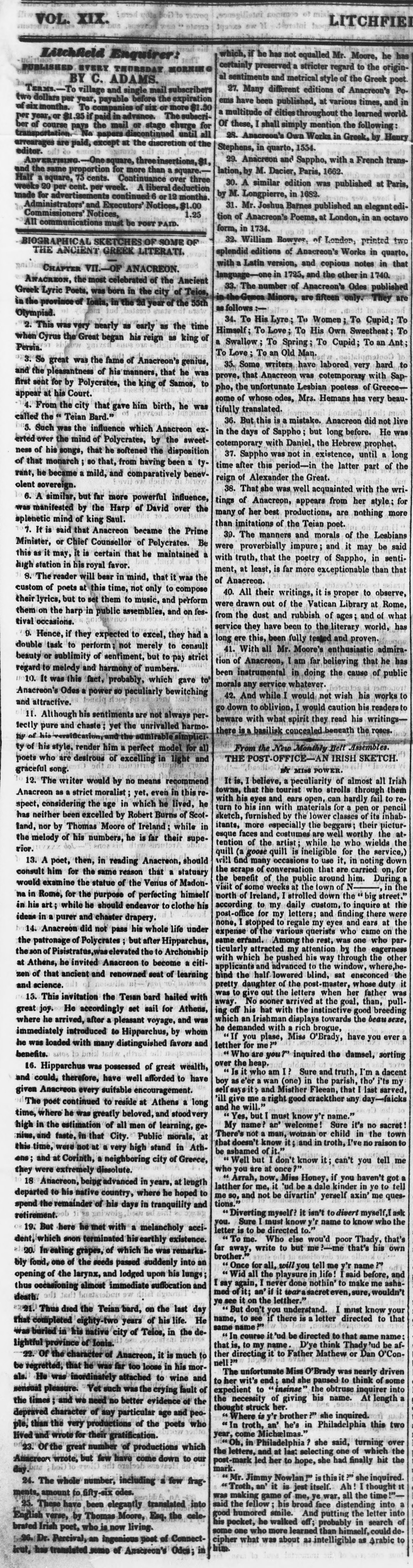 Library of Congress, "Litchfield enquirer, May 22, 1845, Image 1": "Biographical Sketches Of Some Of The Ancient Greek Literari"