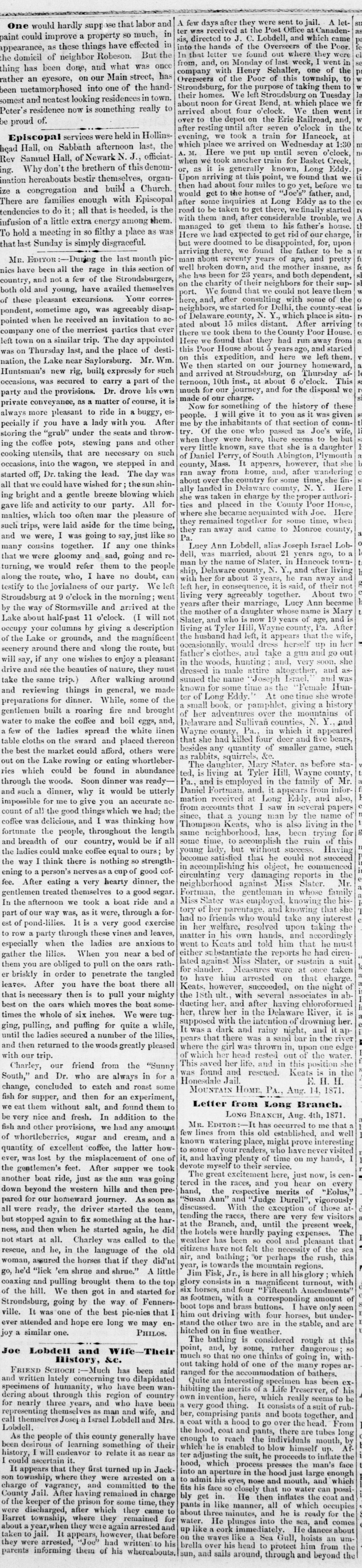 Library of Congress, "The Jeffersonian, August 17, 1871, Image 2": "Joe Lobdell and Wife--Their History"