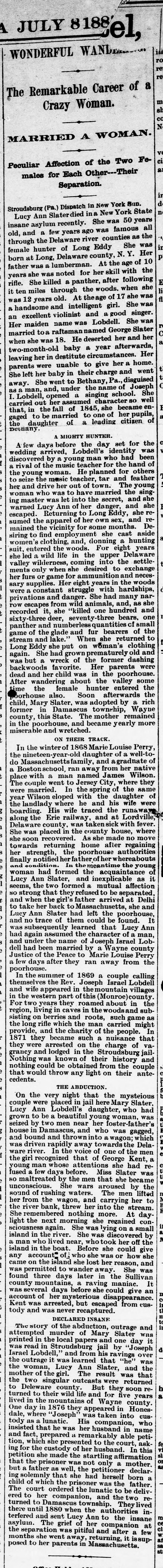 Library of Congress, "The semi-weekly miner, July 08, 1885, Image 3": "The Remarkable Career of a Crazy Woman"