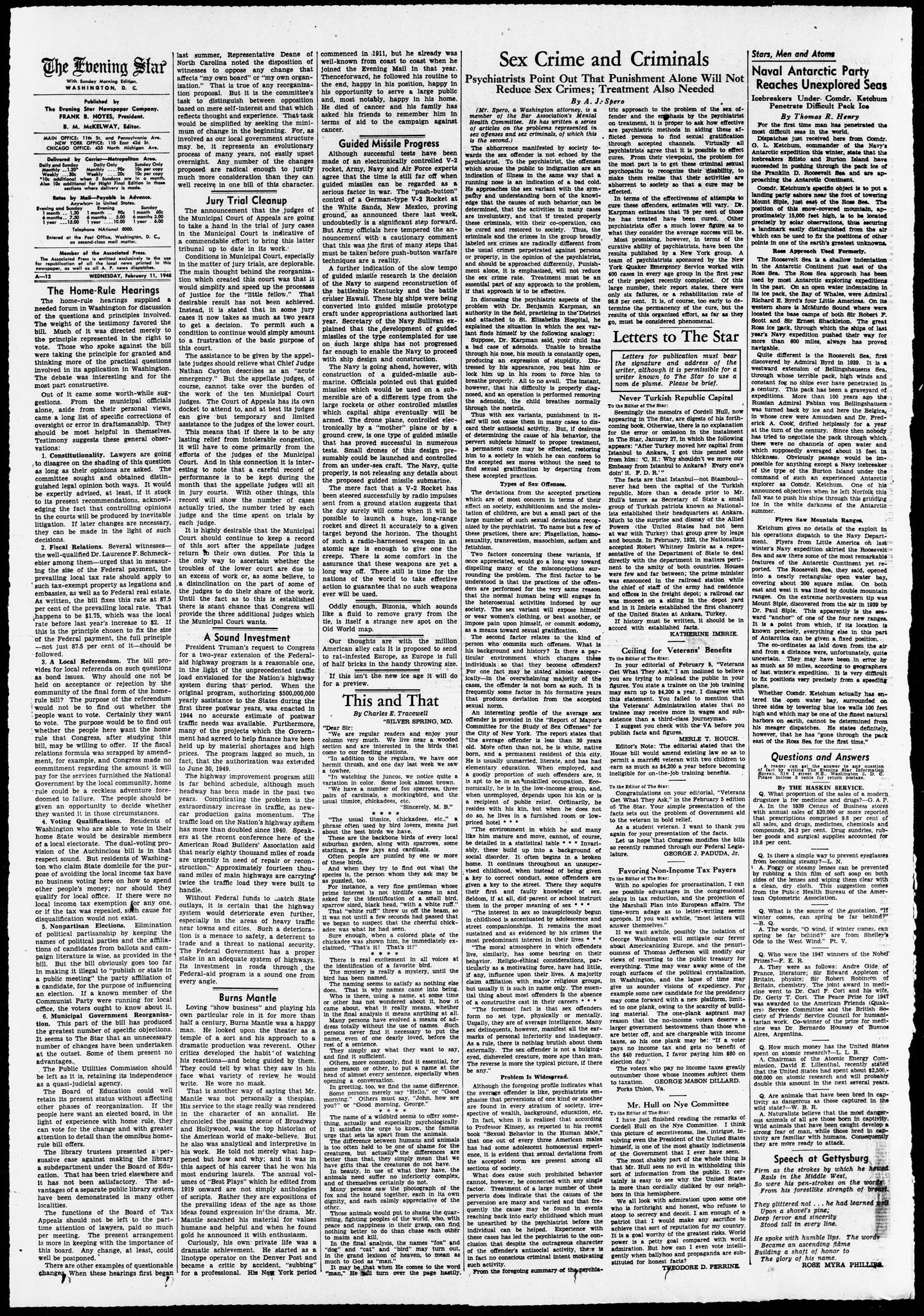 Library of Congress, Evening star. [volume], February 11, 1948, Page A-12, Image 12, "Sex Crime and Criminals"