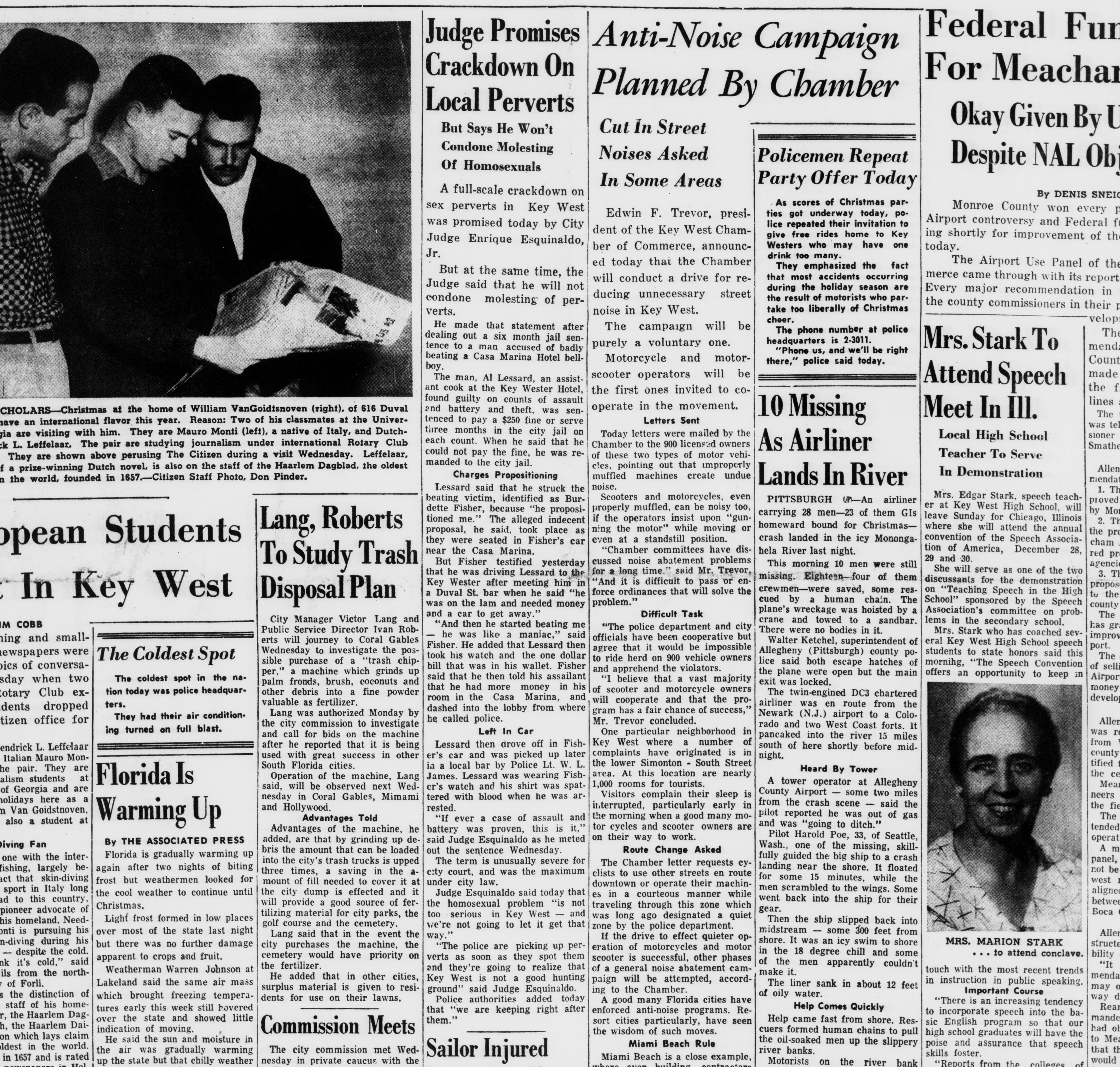 Library of Congress, "The Key West citizen, December 23, 1954, Image 1": "Judge Promises Crackdown On Local Perverts"