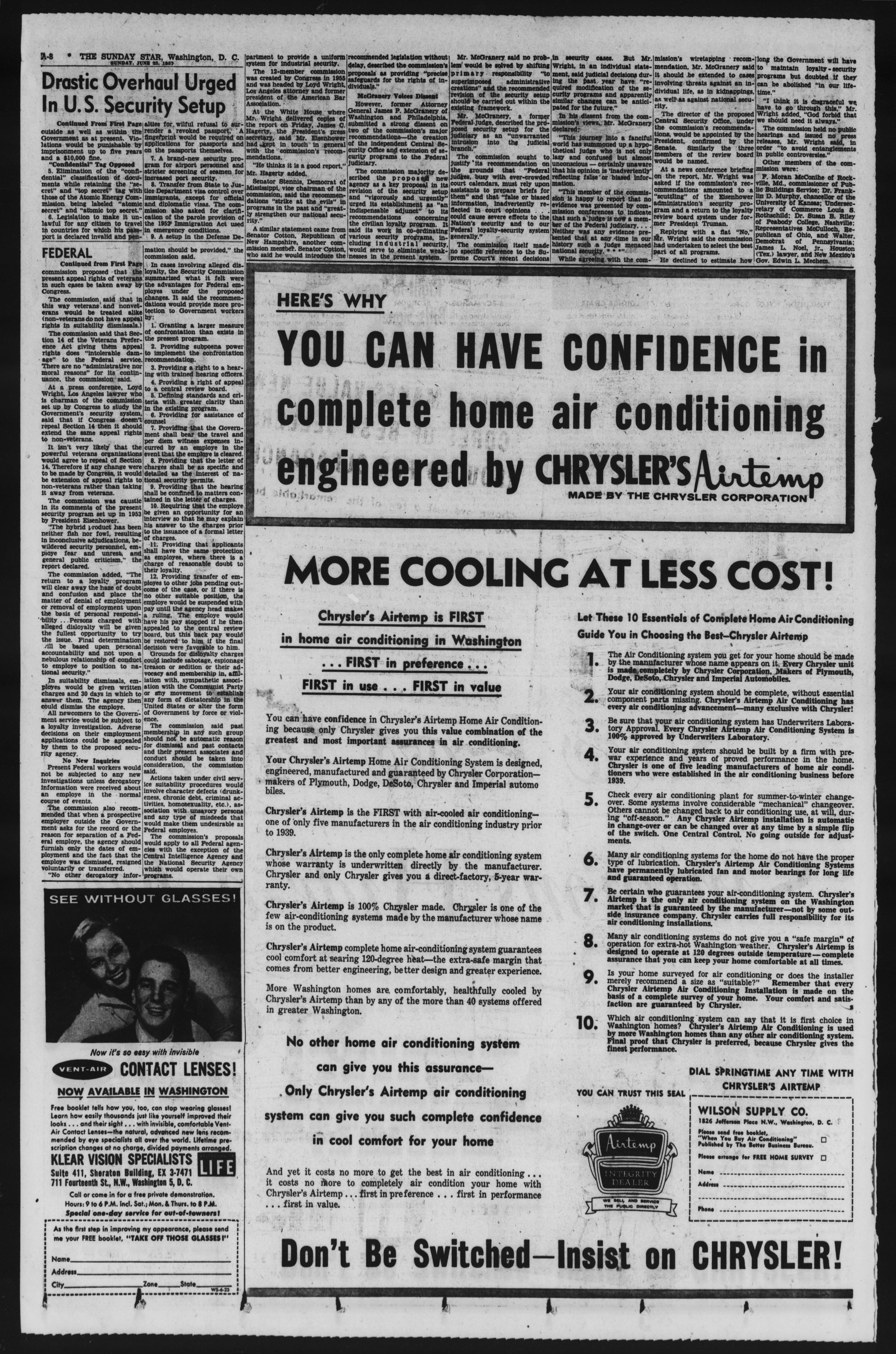 Library of Congress, "Evening star, June 23, 1957, Image 1": "Drastic Overhaul Urged in U.S. Security Setup"