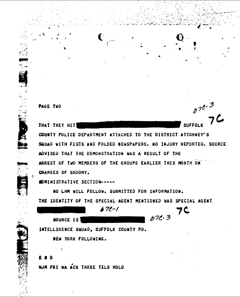 23:01, 16 February 2025 1971-12-15-gaa-protest-suffolk-nypl-page-2.png (file) 154 KB An FBI record describing a protest by the Gay Activists Alliance at the Suffolk County Police Headquarters Credit to Douglas M. Charles, Ph.D., FBI historian and author of "Hoover's War on Gays: Exposing the FBI's Sex Deviates Program". 1