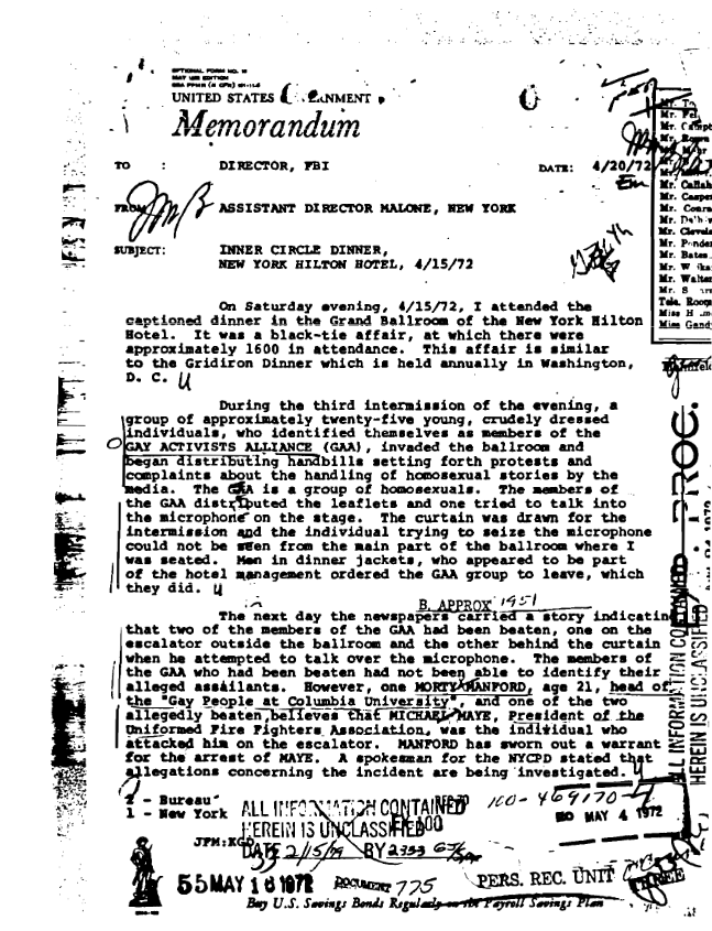 00:34, 11 April 2023 1972-04-20-fbi-memo-gaa-inner-circle-dinner-pt-1.png (file) 281 KB From the FBI Vault on the Gay Activists Alliance, Part 1 of 2. 1